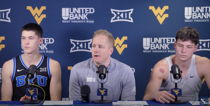 Watch BYU coach Kevin Young and players Egor Demin and Mihailo Boskovickin in their post-game press conferences following their win at the WVU Coliseum Tuesday evening.